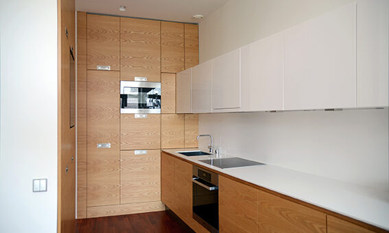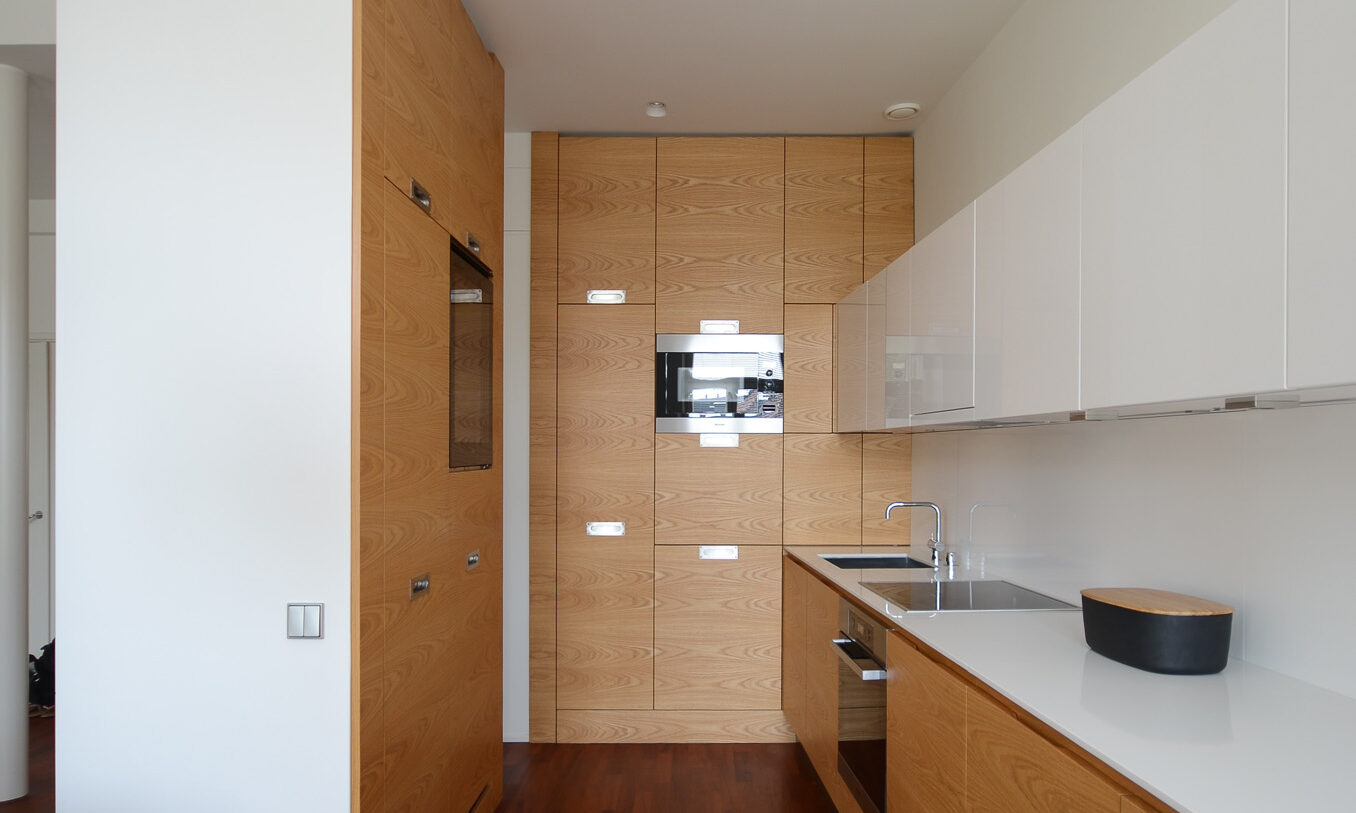 Eirassa sijaitsevan asunnon korjaus sisälsi kiinto- ja irtokalusteiden suunnittelua.